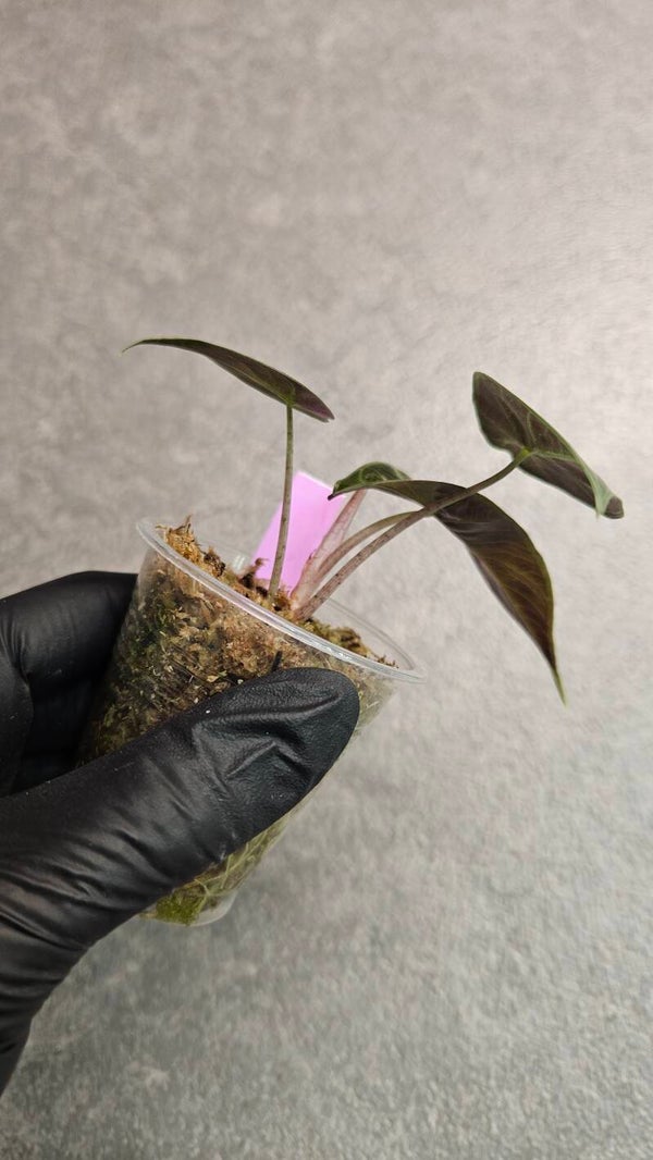 De mooie Pink Dragon met zeer sterke genen. Hij zal uitgroeien tot een imposante Alocasia met donkergroene bladeren en een bijna felroze stam die werkelijk uitblinkt!