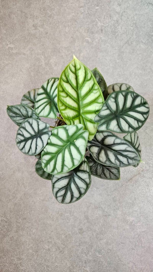 De prachtige Silver Dragon met opvallende groenzilveren bladeren. Met een goed stel wortels en een stabiele ontwikkeling. Af en toe vertoont deze een subtiele sport variegata net als de moeder op de laatste foto.