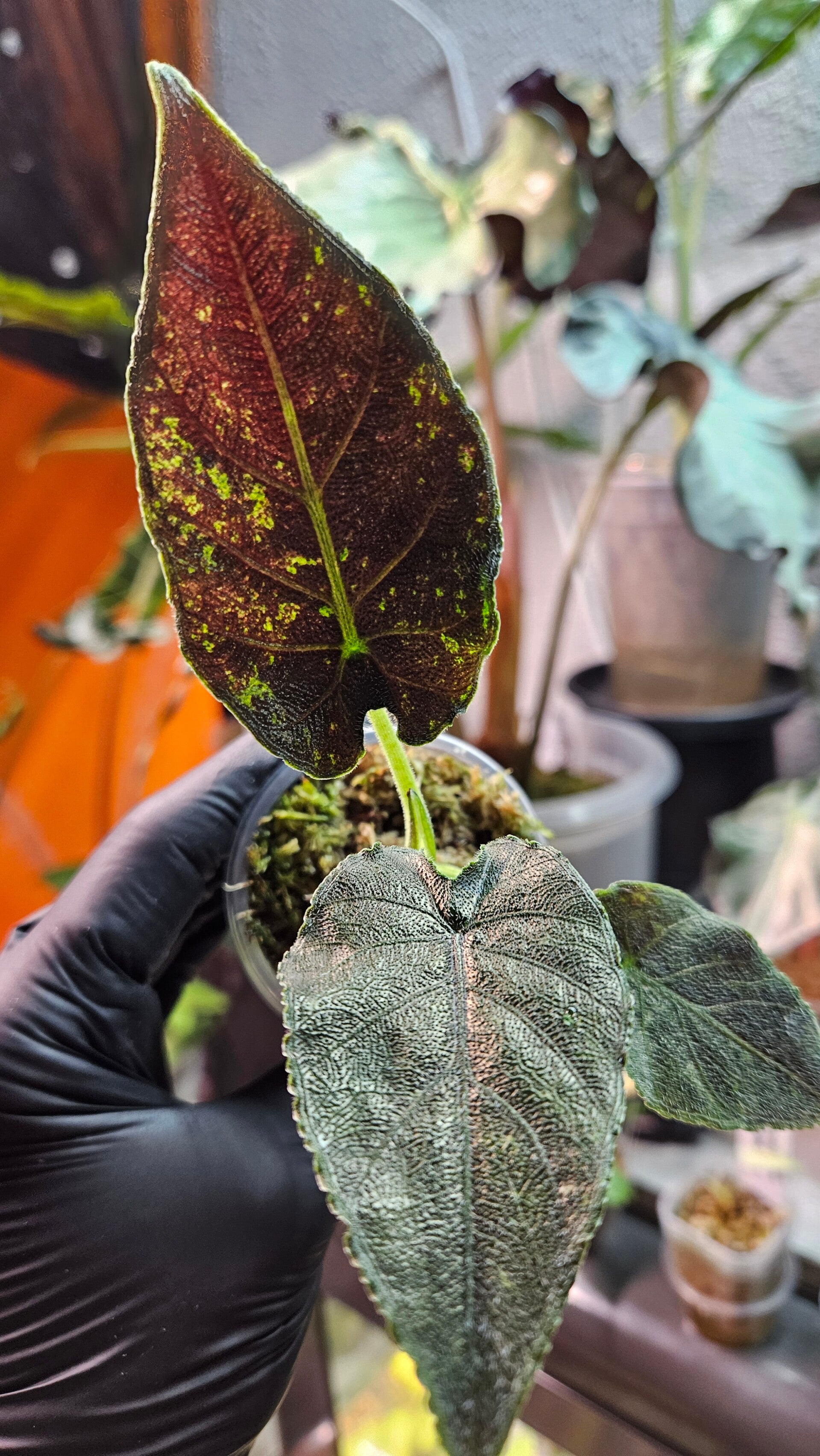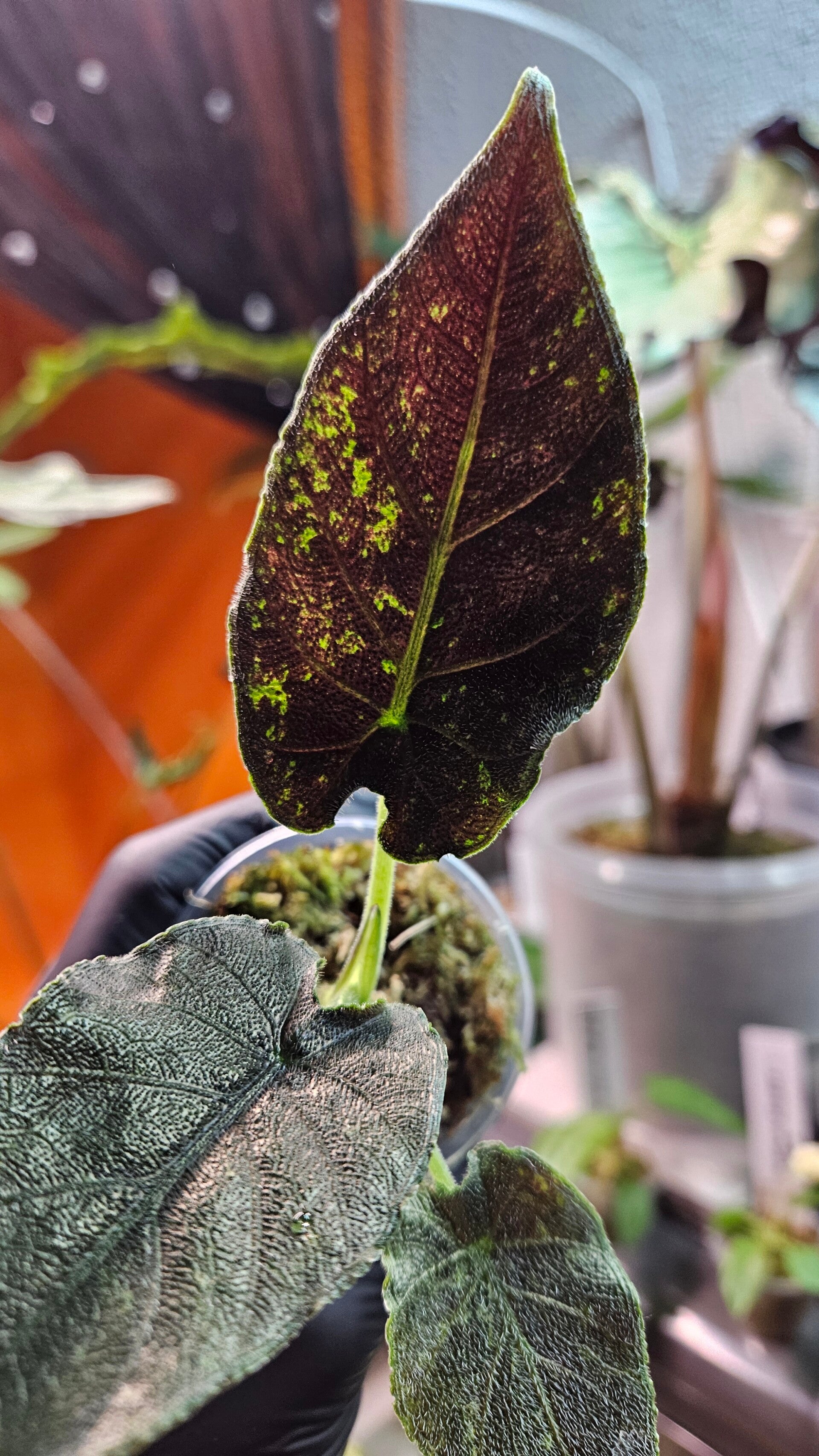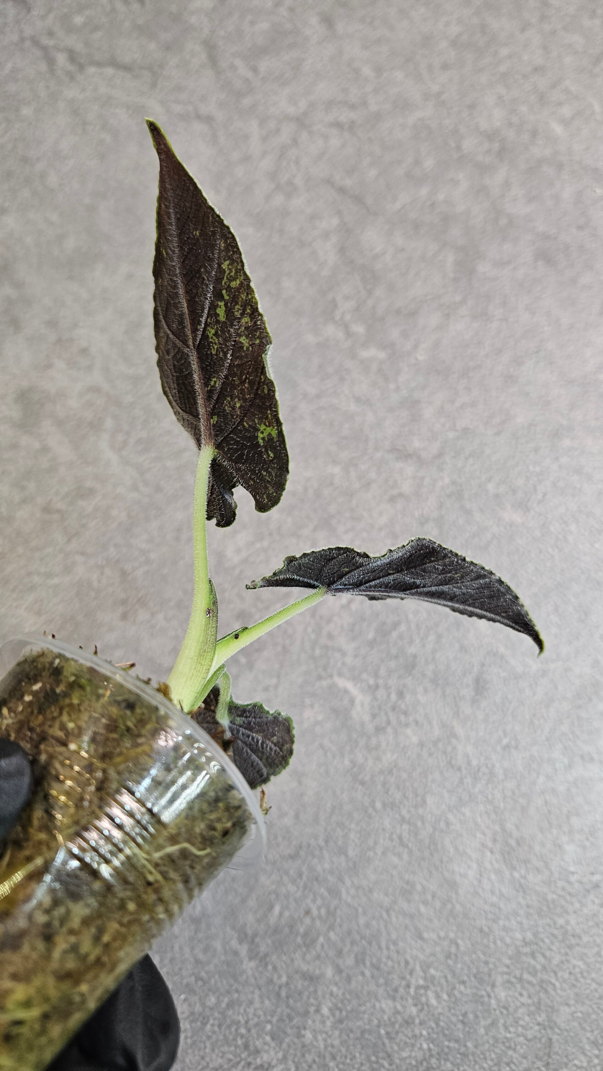 Een prachtige Antoro Velvet kleintje die zich al mooi heeft ontwikkeld. Bij elk nieuw blad laat hij steeds opvallendere variegata zien.
