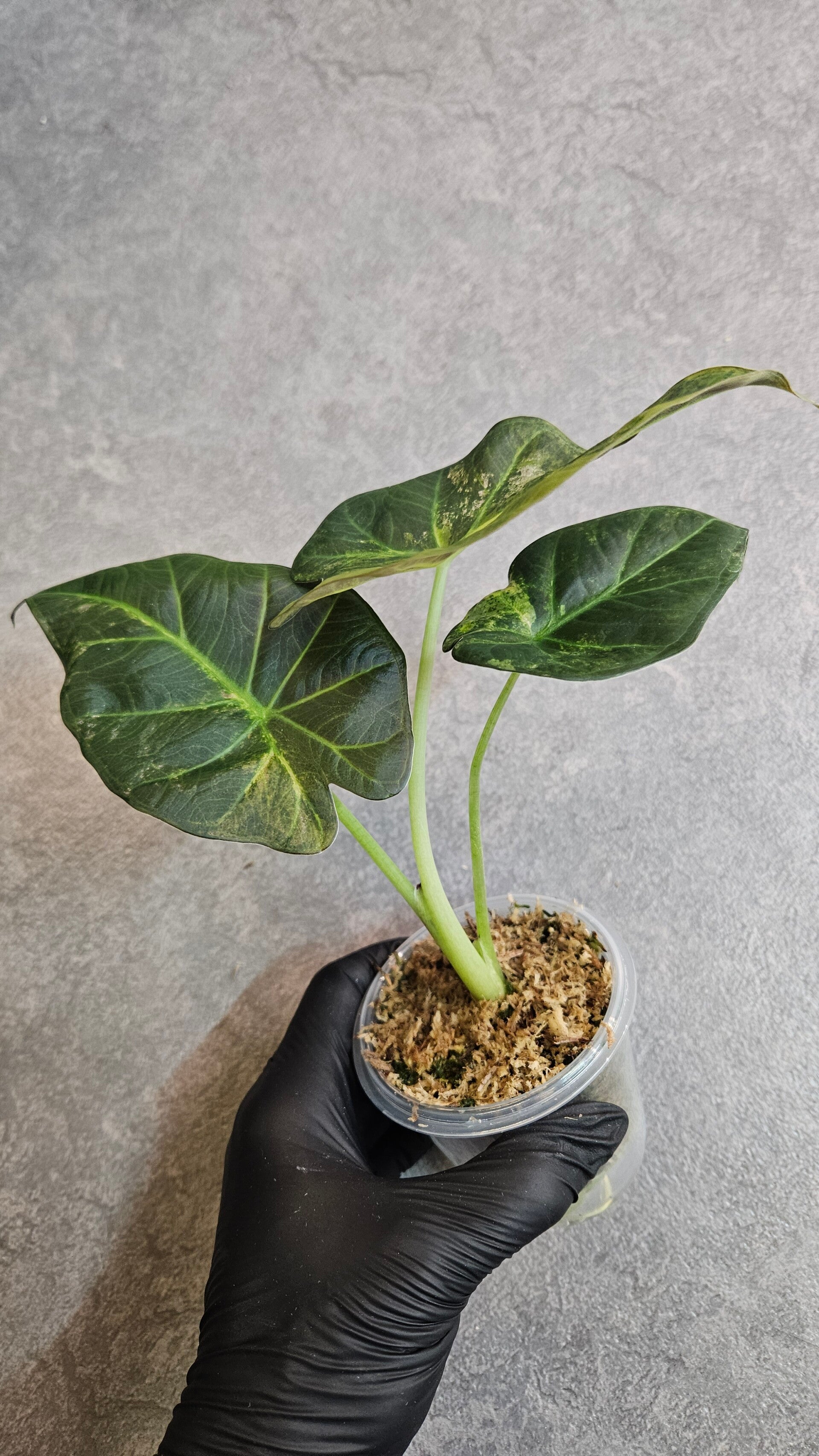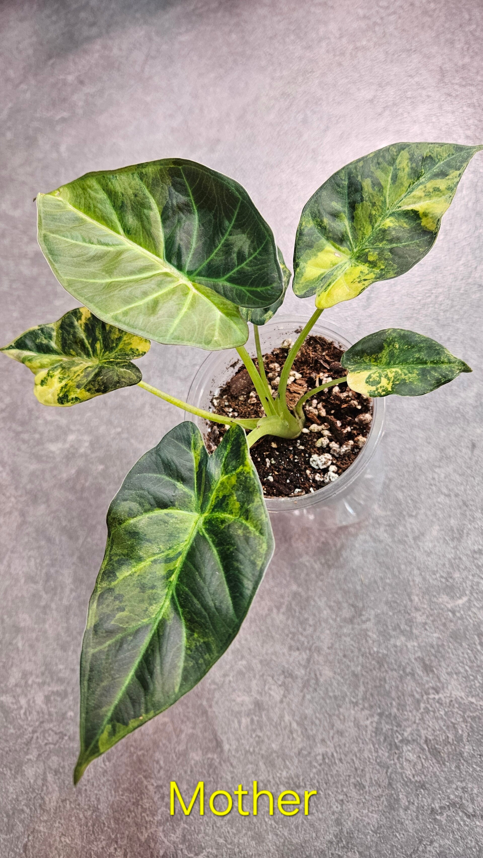 De unieke Regal Shield met prachtige duidelijke variegata zichtbaar en soms enkele roze tinten. De laatste foto is van de moederplant.