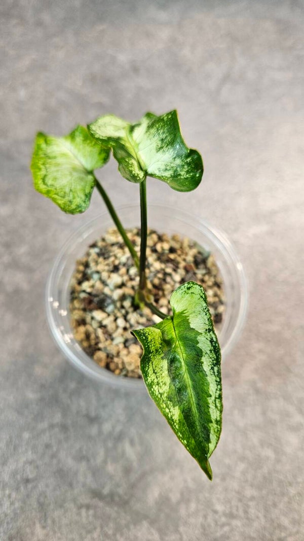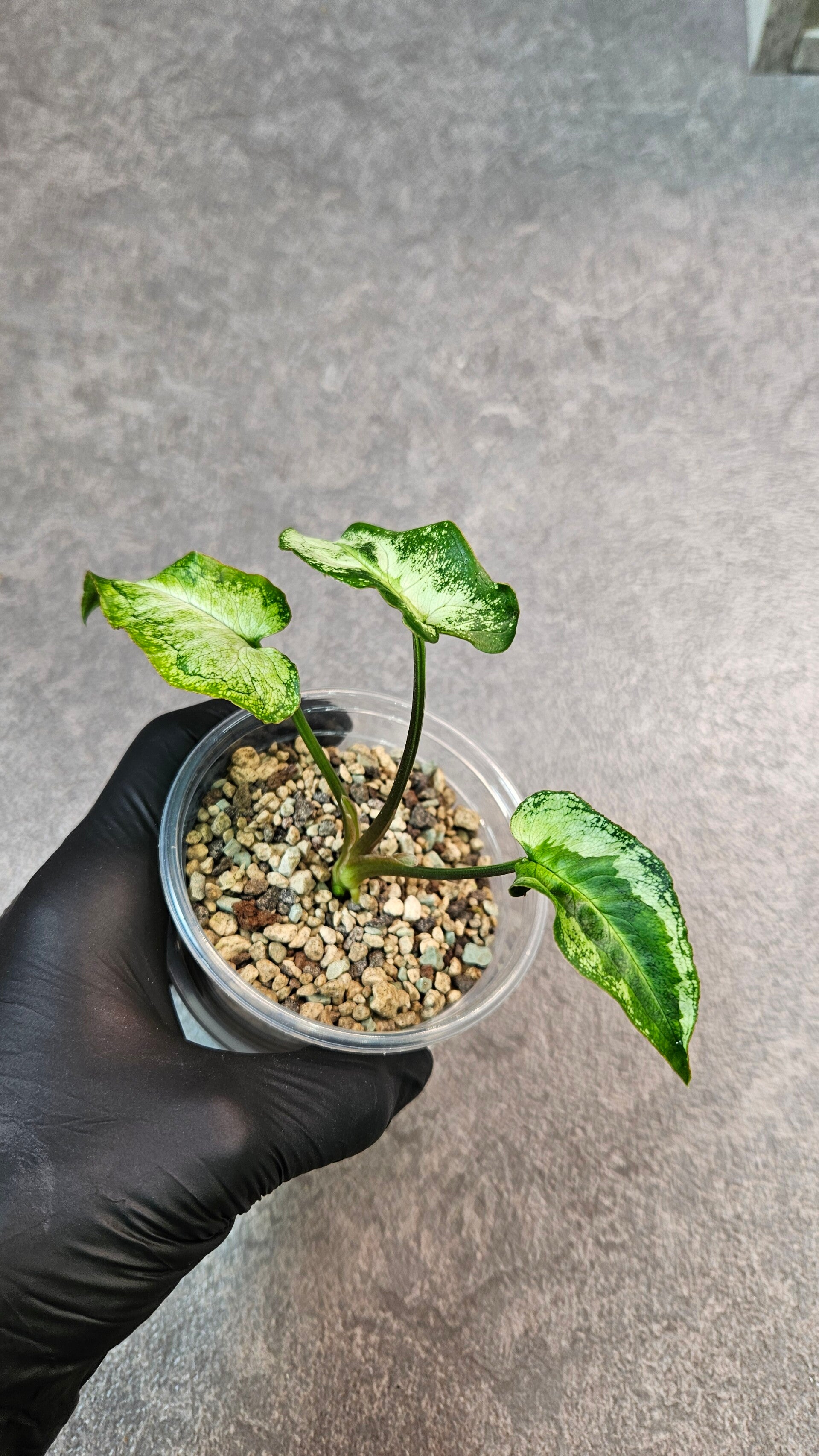 Een mooie jonge gezonde stek van de Three Kings. Deze is volop aan het groeien tot een prachtige Syngonium met diverse tinten groen.