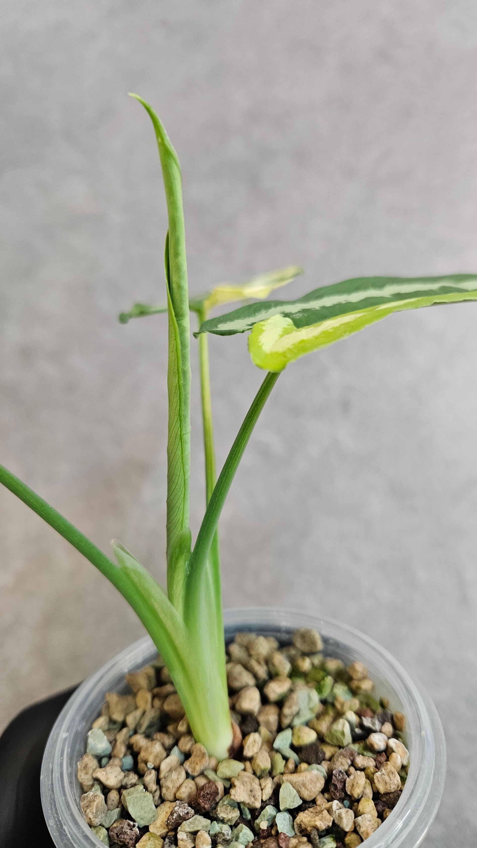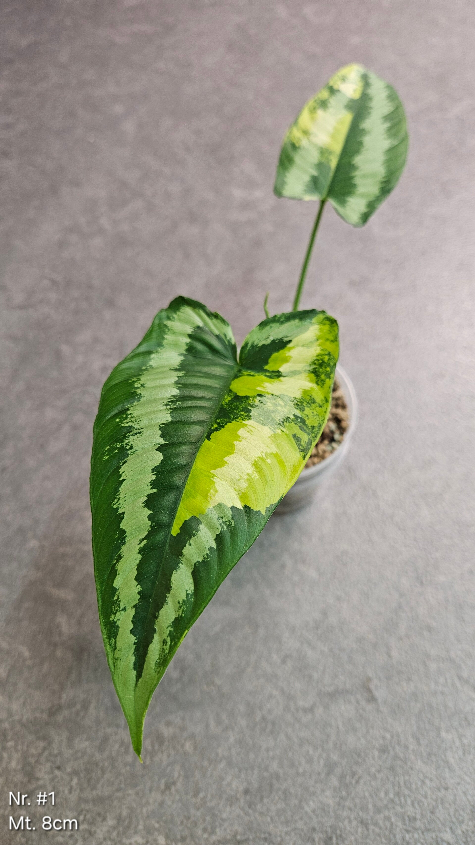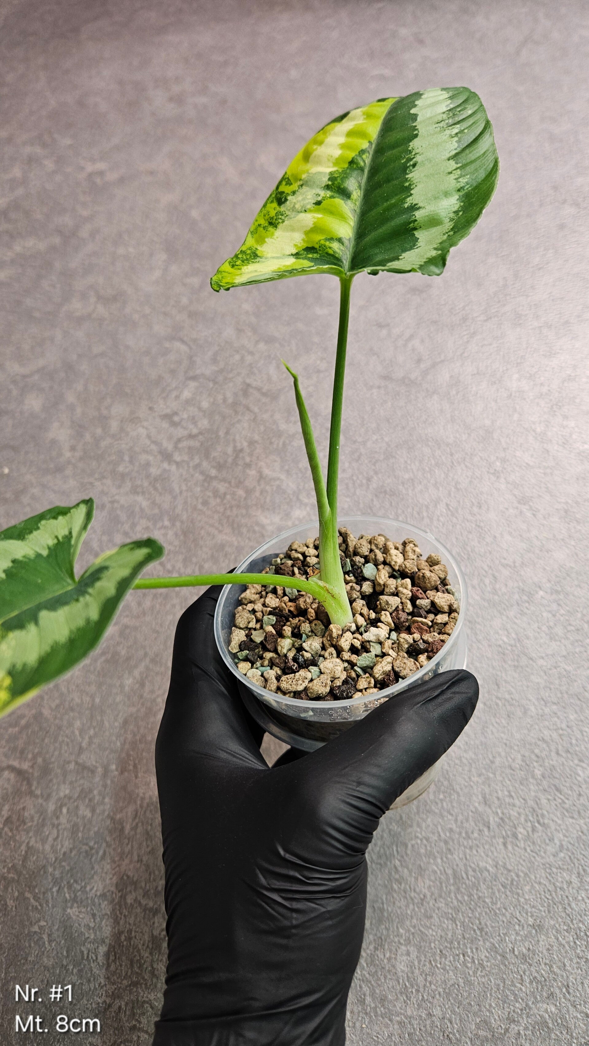 De unieke zeldzame Schismatoglottis Wallichii in de zeldzame variegata variant! Met een stabiele ontwikkeling - en geven prachtige variegata! In volwassen vorm wordt dit een volle, prachtige plant die bovendien makkelijk te onderhouden is. De laatste foto is van de moederplant