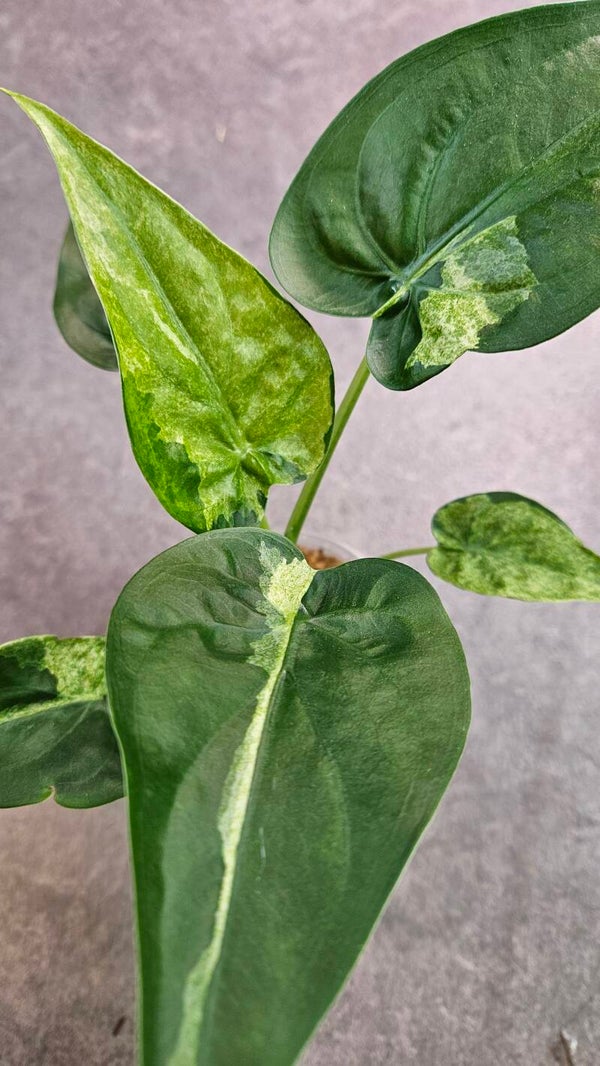 Een mooie jonge Cucullata met prachtige aurea/mint variegata. De Cucullata is een van de makkelijkste Alocasia's en ontwikkelt in volwassen vorm volle, indrukwekkende en weelderige bladeren.