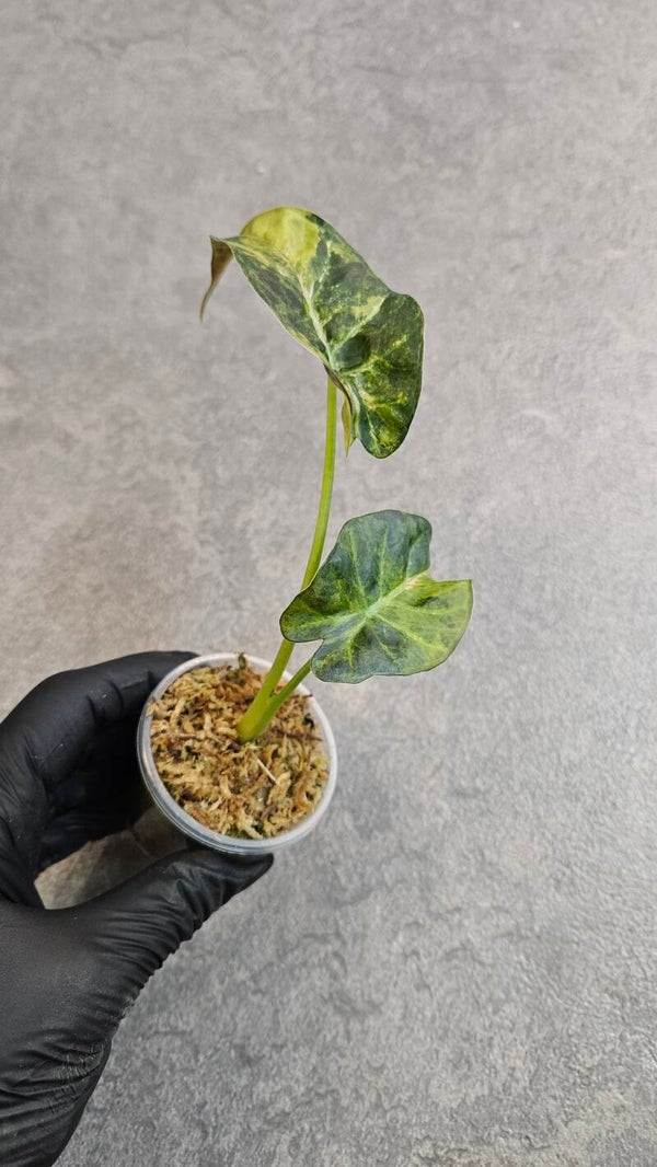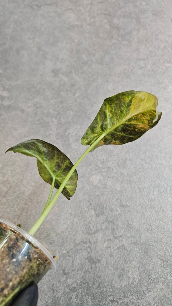 De Regal Shield met aurea/gold variegata en soms enkele roze tinten. De laatste foto is van de moederplant.